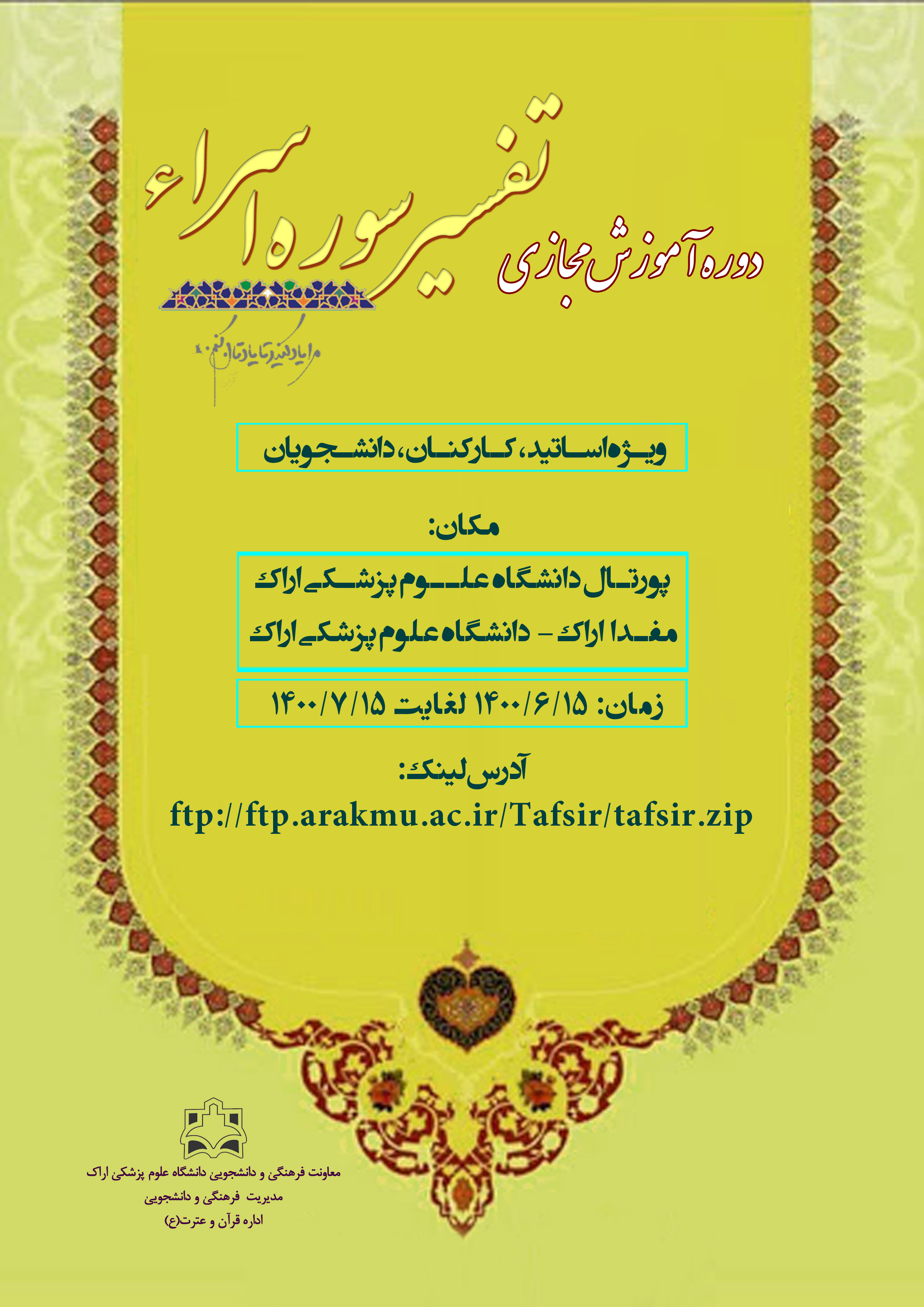 دوره آموزش مجازی تفسیر سوره اسراء ۱۳ شهریور ۱۴۰۰ | ۱۱:۳۲ کد : ۱۹۸۲۹ اطلاعیه ارسال به دیگران نام شما ایمیل شما ایمیل دریافتکننده ارسال انصراف تعداد بازدید:۲۷۵۸۲