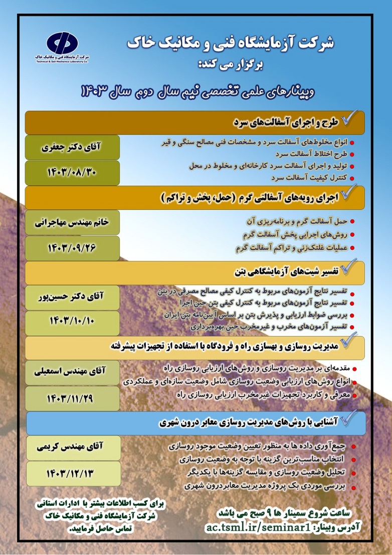 وبینارهای علمی تخصصی شرکت آزمایشگاه فنی و مکانیک خاک ۲۶ آبان ۱۴۰۳ | ۱۲:۵۰ کد : ۴۷۷۳۴ اطلاعیه ارسال به دیگران نام شما ایمیل شما ایمیل دریافتکننده ارسال انصراف تعداد بازدید:۹۴۸۰ برگزاری وبینارهای علمی تخصصی نیم سال دوم سال ۱۴۰۳ شرکت آزمایشگاه فنی و مکانیک خاک