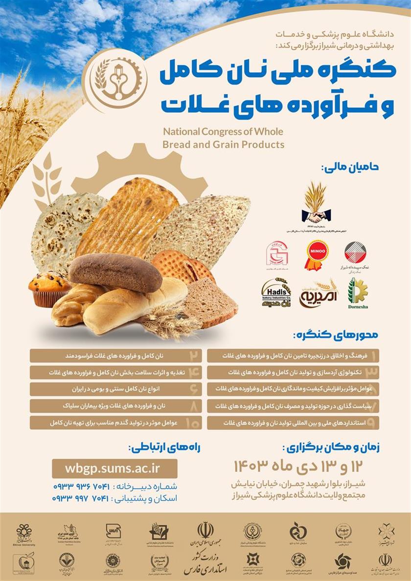 دانشگاه علوم پزشکی شیراز در نظر دارد با توجه به لزوم فرهنگ سازی و ارتقائ مصرف نان کامل و فرآورده های غلات سالم، کنگره ملی نان و فرآورده های غلات را با مشارکت متخصصین، صاحبنظران، اعضای هیات علمی و پژوهشگران کشور برگزار نماید.