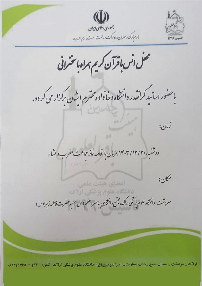کلیدواژه‌ها: دانشگاه سردشت محفل انس با قرآن دانشگاه علوم پزشکی اراک