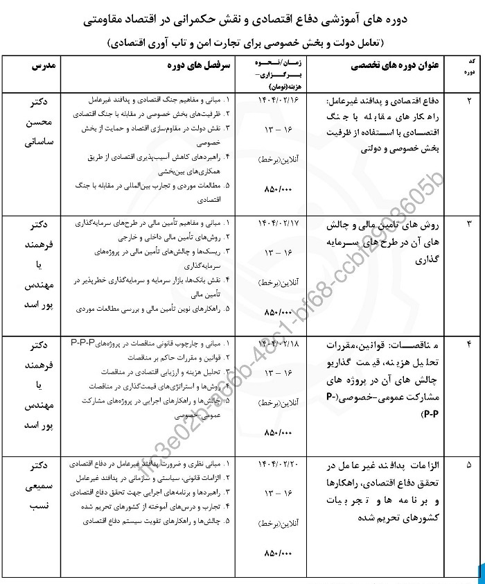 دوره آموزشی "دفاع اقتصادی و نقش نظام حکمرانی در اقتصاد مقاومتی "