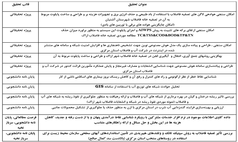 فراخوان طرح های تحقیقاتی شرکت آب و فاضلاب استان مرکزی