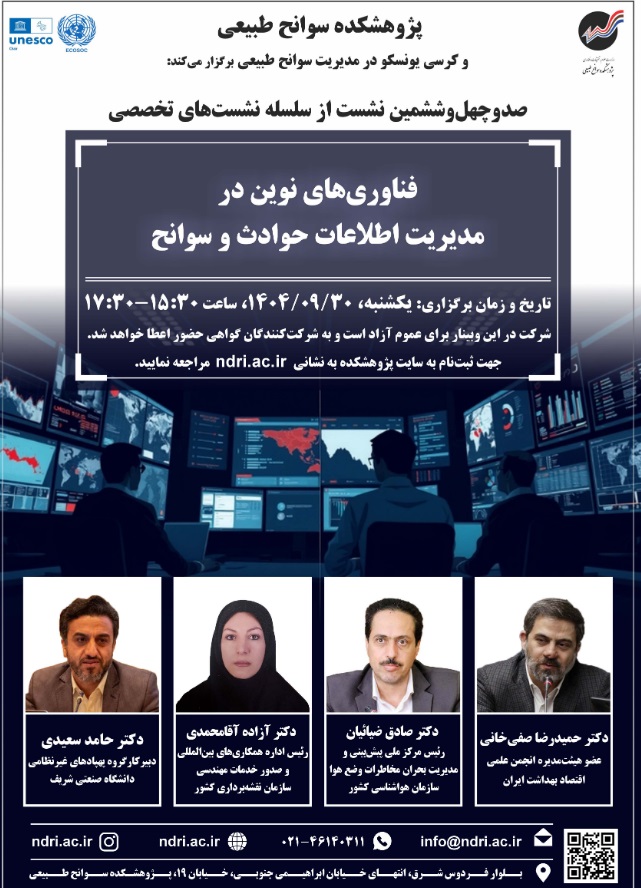 نشست فن آوری نوین در مدیریت اطلاعات حوادث وسوانح ۳۰ آذر ۱۴۰۴ | ۱۲:۰۴ کد : ۵۷۱۴۹ اطلاعیه ارسال به دیگران نام شما ایمیل شما ایمیل دریافتکننده ارسال انصراف تعداد بازدید:۱۴۸۶ دعوتنامه نشست فن آوری نوین در مدیریت اطلاعات حوادث وسوانح